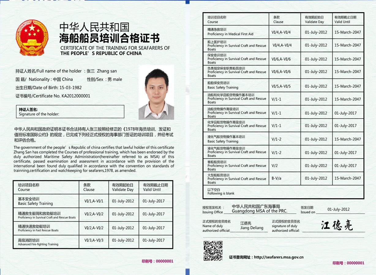 中華人民共和國海船船員培訓(xùn)合格證書